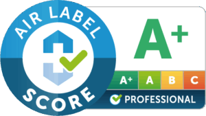 Certificato A+ Air Label Score Professional, garanzia di qualità dell’aria in quanto attesta le basse emissioni di sostanze rilasciate nell’aria.